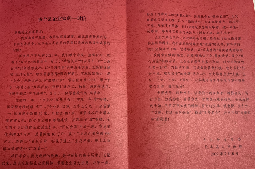 (长丰县委及县政府致全县企业家的一封信)