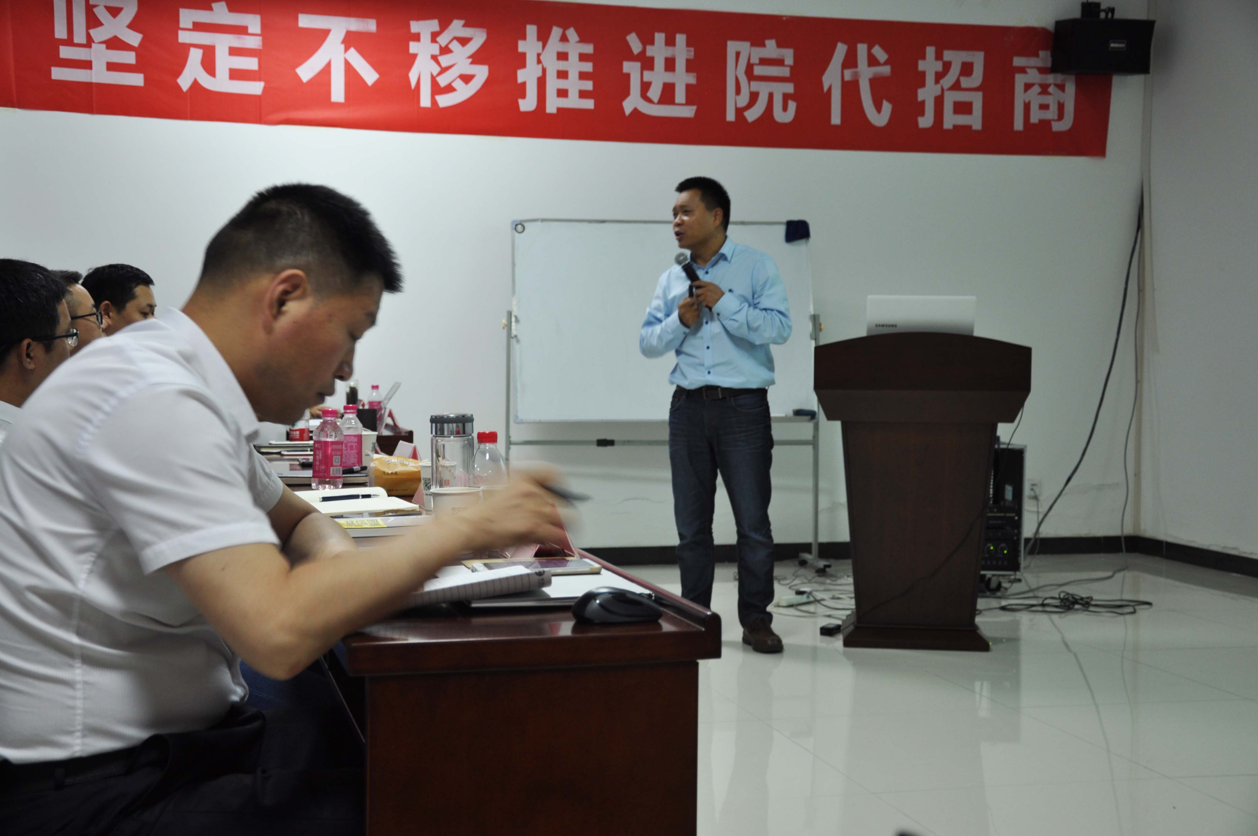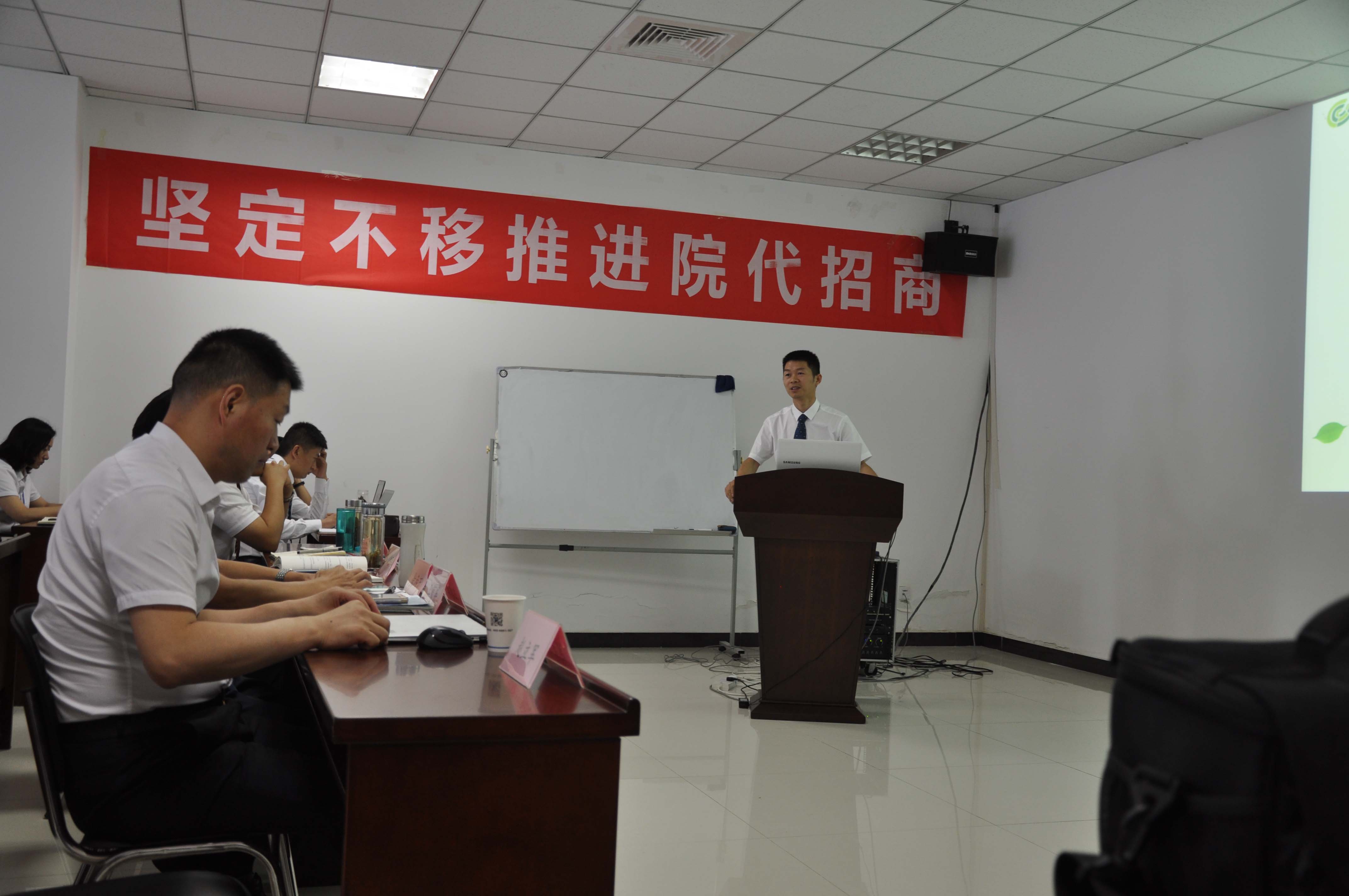 王总在会上认真总结公司上半年的营销工作,通过分析上半年全国市场销售状况,针对2018年是公司医院开发年和学术推广宣贯年,要从产品规划、行动策略、执行细则、结果考核等方面全面贯彻,全面推进市场发展。在下半年的工作中要以“院代招商,学术落地”为主线,全面推进产品的推广和既定销售指标的完成。并指出要在经营模式、后台保障、终端管理、商务保障、学术落地、激励到位、考核到位七个方面保证分解指标的全面完成,为荣誉、命运和信念而战。